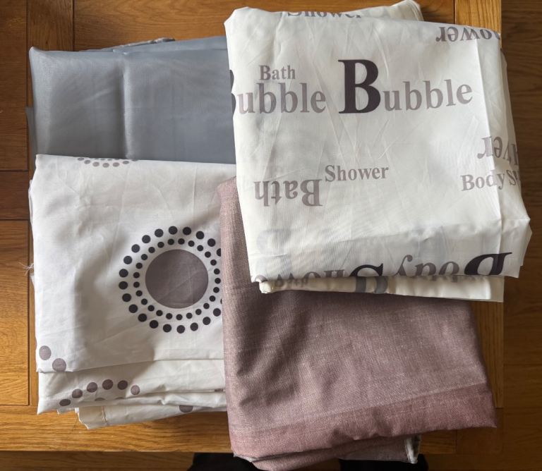 4 shower/bath curtains & 2 backing curtains with hooks. Collection only.
