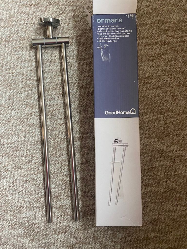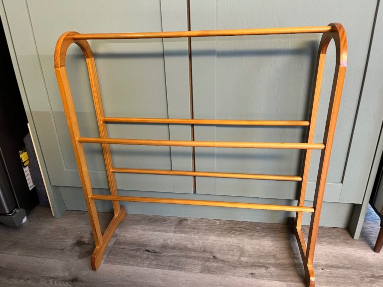 It simply leans against the wall or door — no fixing needed. Lightweight but sturdy and ideal for hanging bath towels, hand towels or clothes.