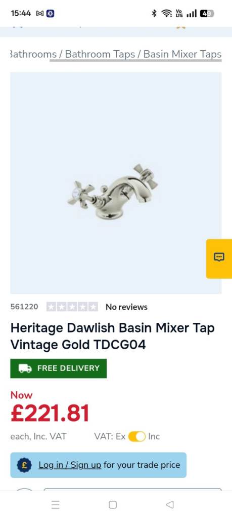 Heritage 1924 mixer tap. Originally paid £220 but never fitted.