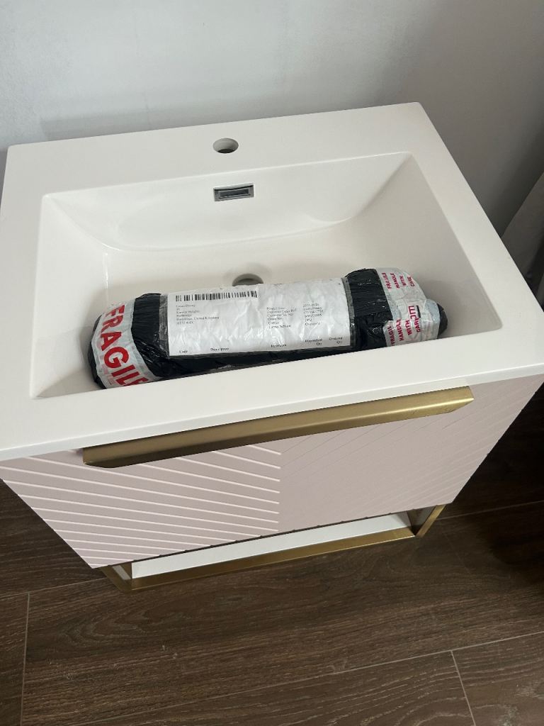 Bathroom 600ml wall hung vanity herringbone design