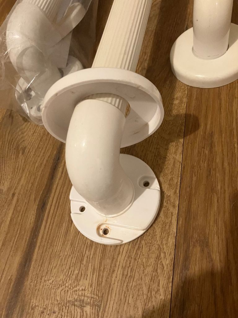 As shown in second photo, there are holes to screw the rail to the wall and a cover which then fits over the screws.