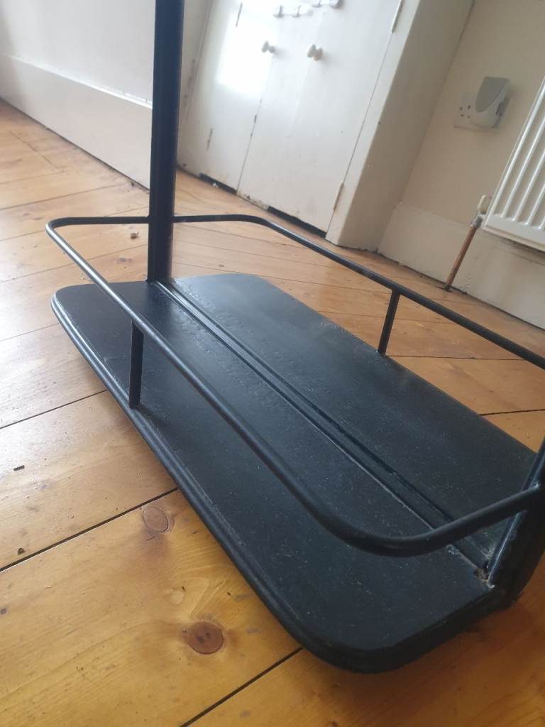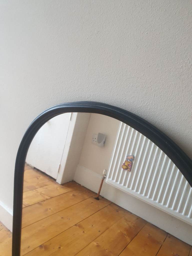 Black metal bathroom mirror. Approximate dimensions in cm 52(w)x75(h)x14(d). Collection only.