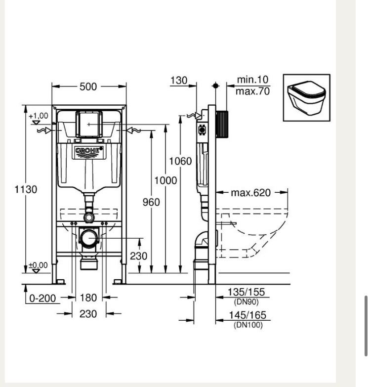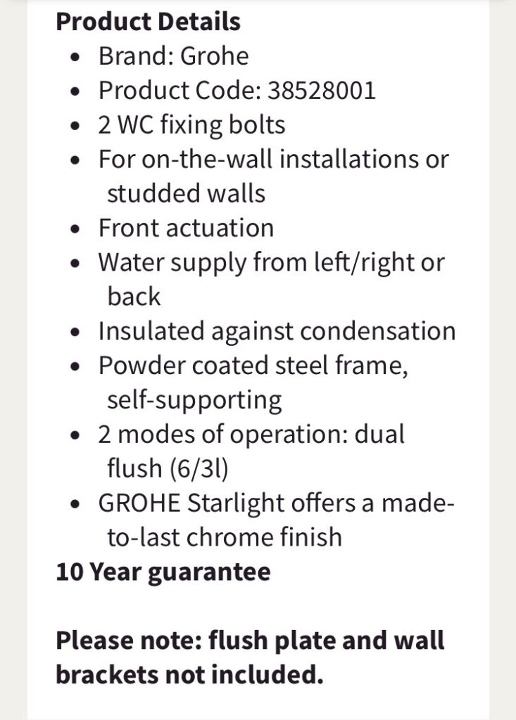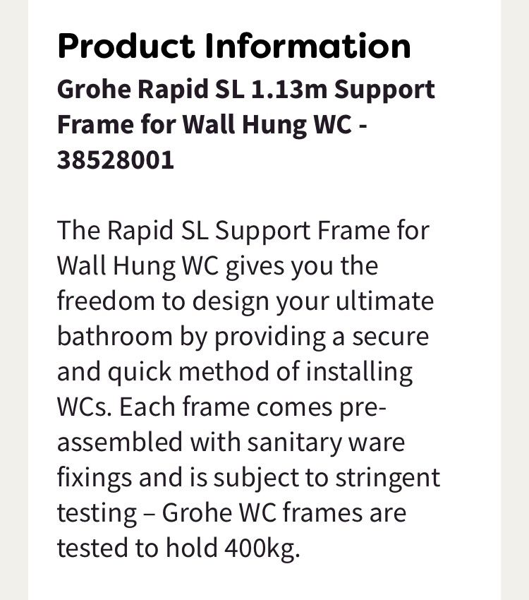 Brand new unopened Grohe toilet frame for wall hung toilet, in box never opened.