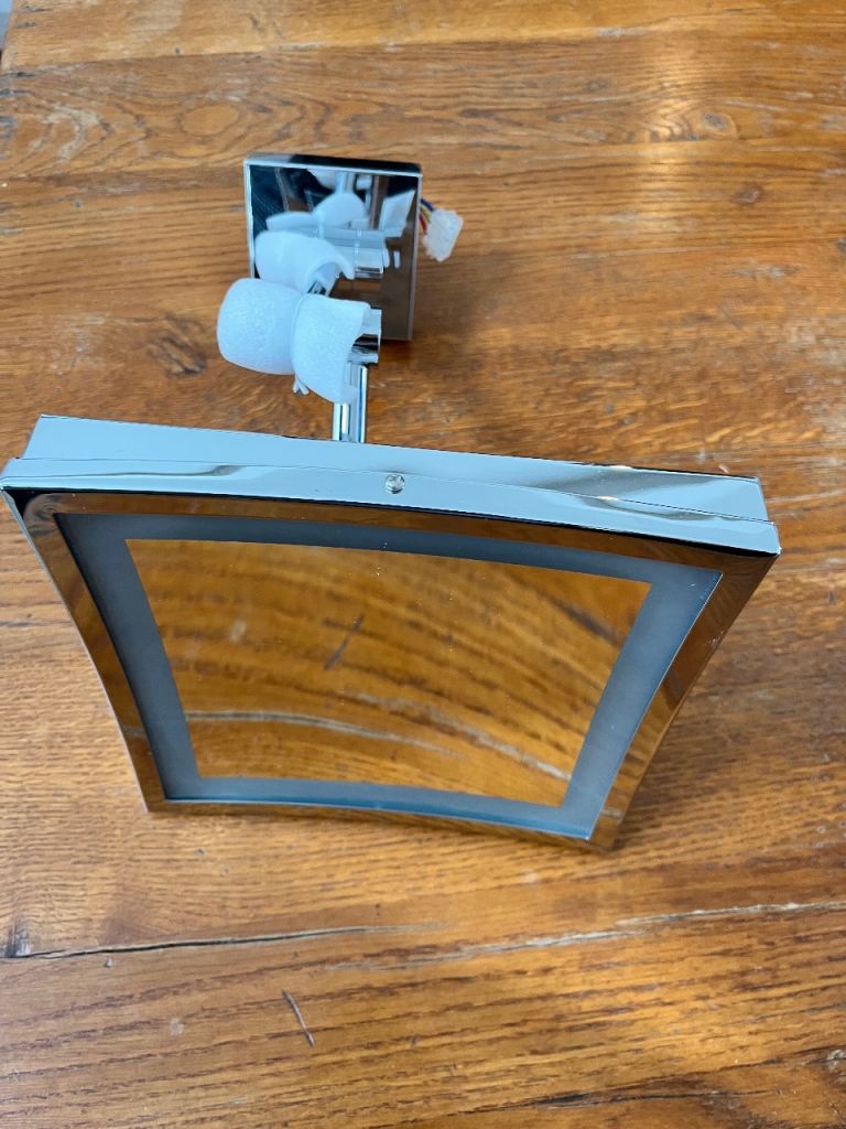 Mains makeup/shaving magnifying mirror, 21cm square, ideal for bathroom.
