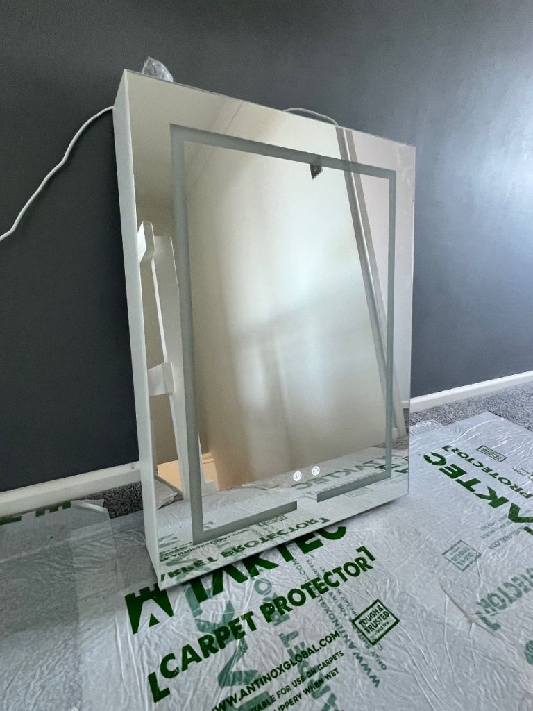 Brought in February for our new bathroom but it’s too big for the small space we have. Never been fitted. I’ll post Amazon link so you can see all information.