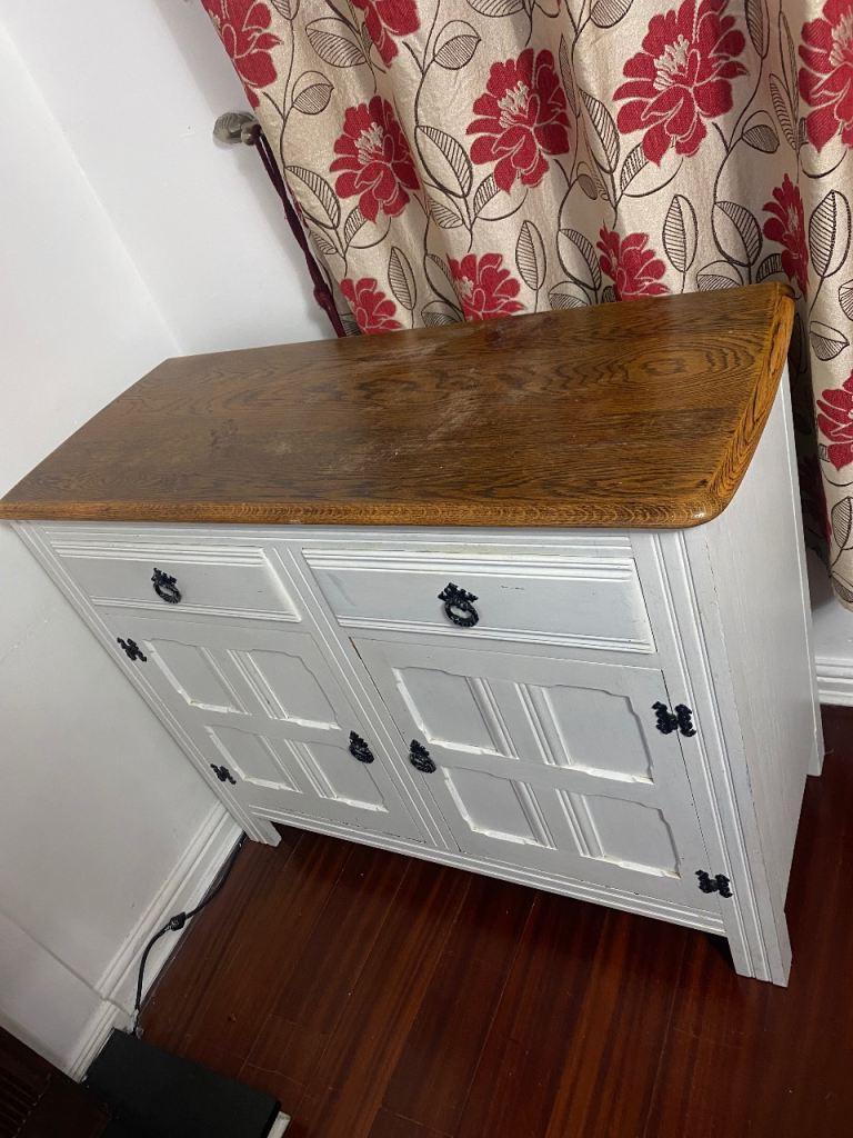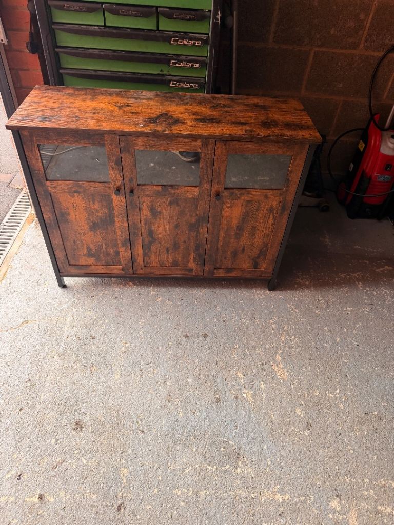 The top hutch with glass shelves is perfect for showcasing cherished items, glassware, or a mini library, while the spacious lower cupboard and drawer offer versatile hidden storage.