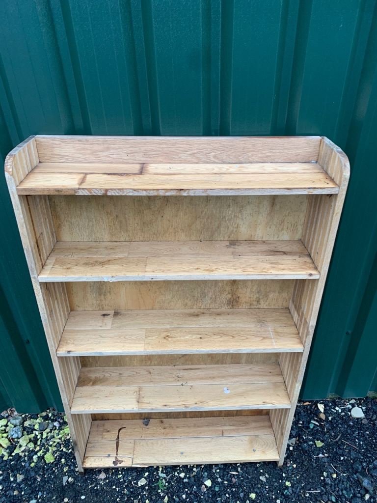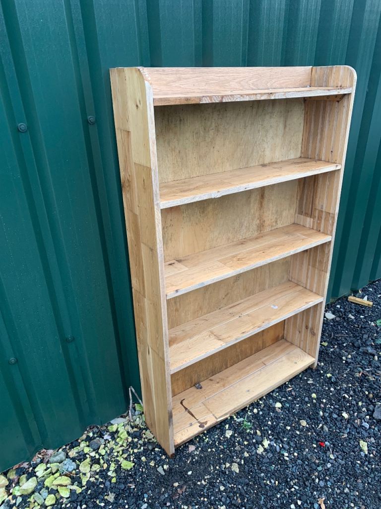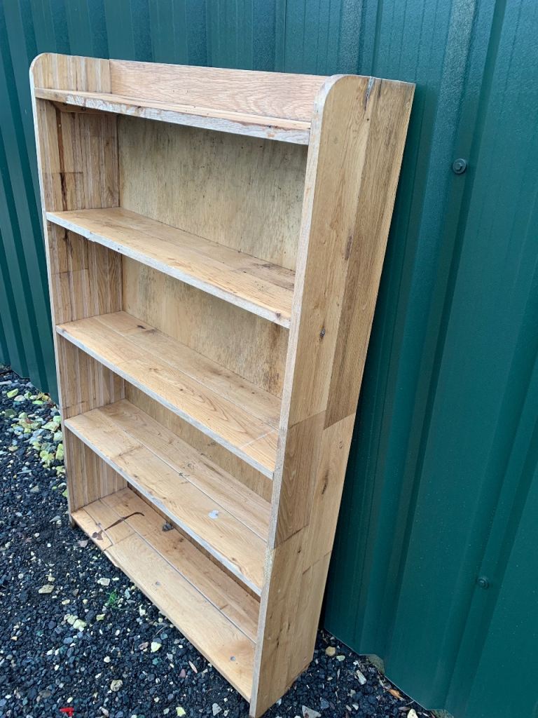 Solid wooden workshop shelving unit, ideal for use in a garage, shed, workshop, or utility space. Practical open shelving for tools, paint, parts, boxes, or general storage.