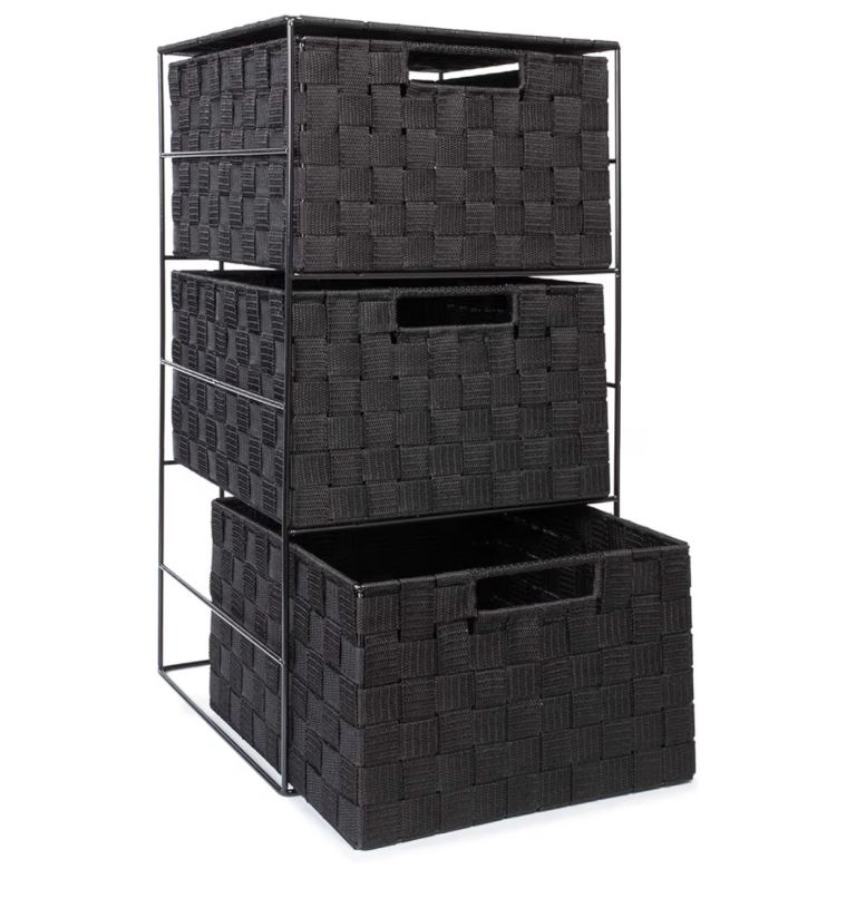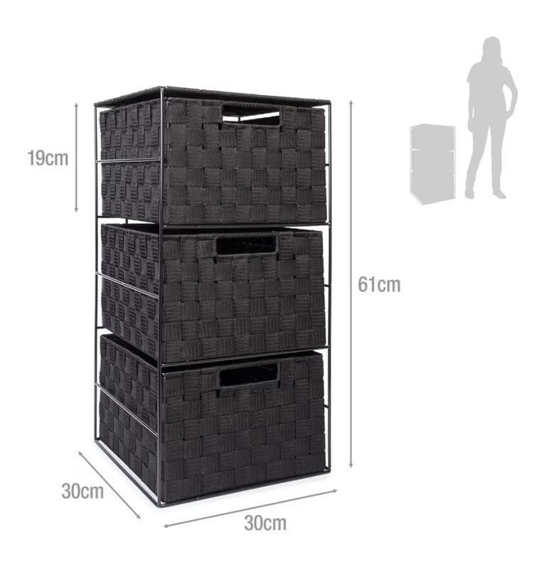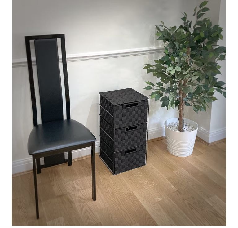 Two Woven 3 Drawer Storage Unit Cabinet For Bathroom, Bedroom - Black