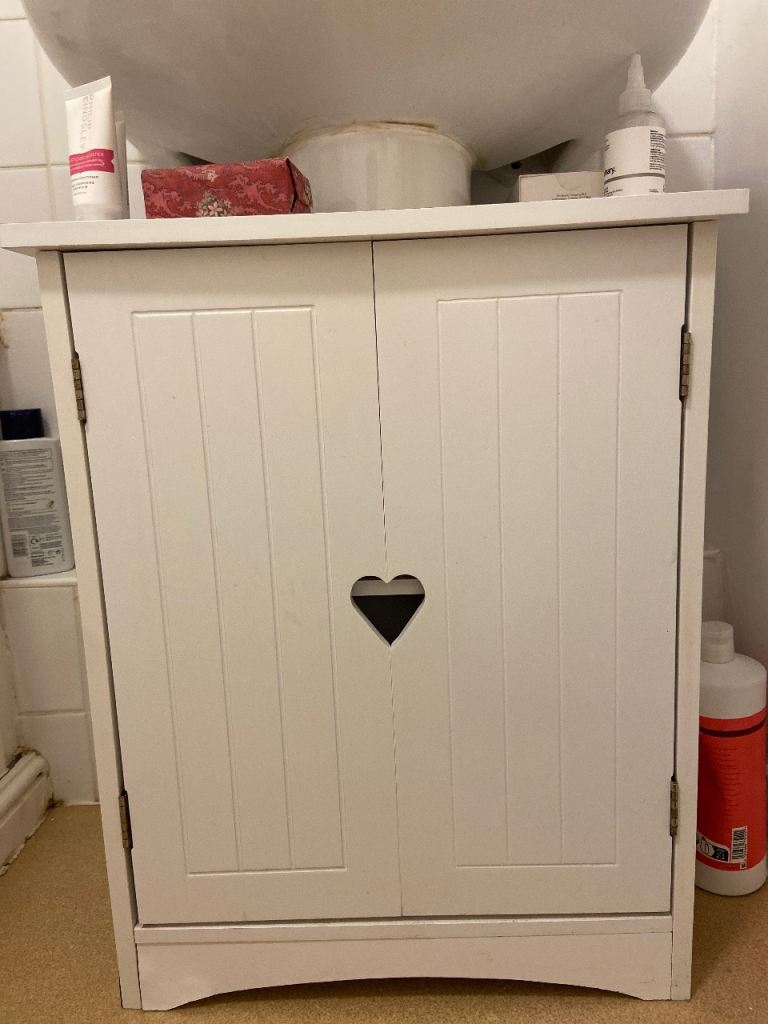 White bathroom cabinet for sale still in the box never used selling for 10pounds