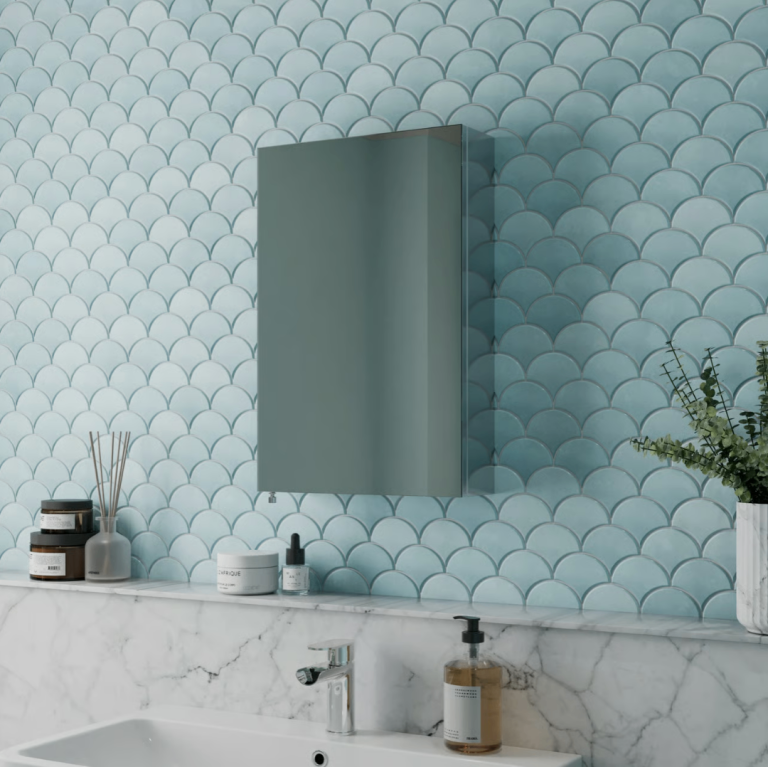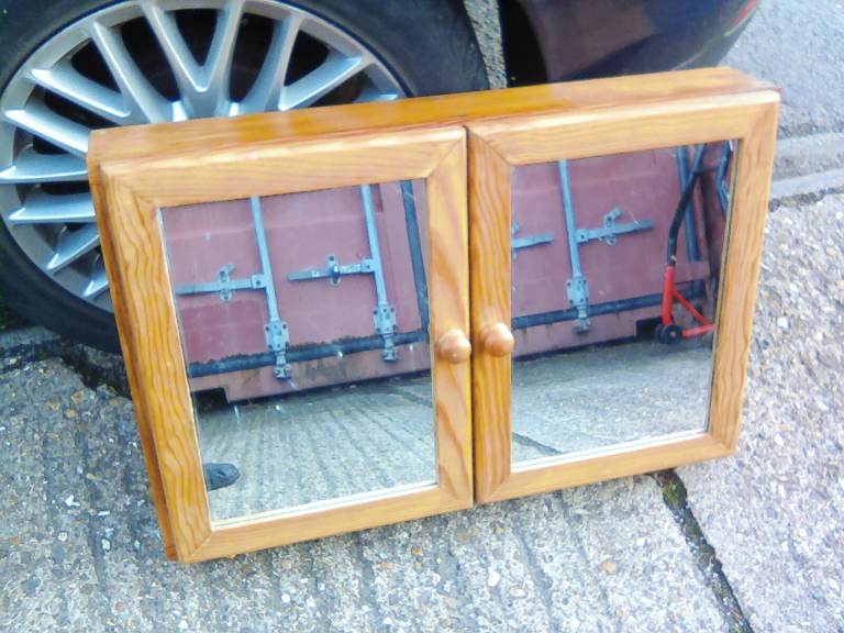 Wall Cabinet with an adjustable shelf and mirrored doors.