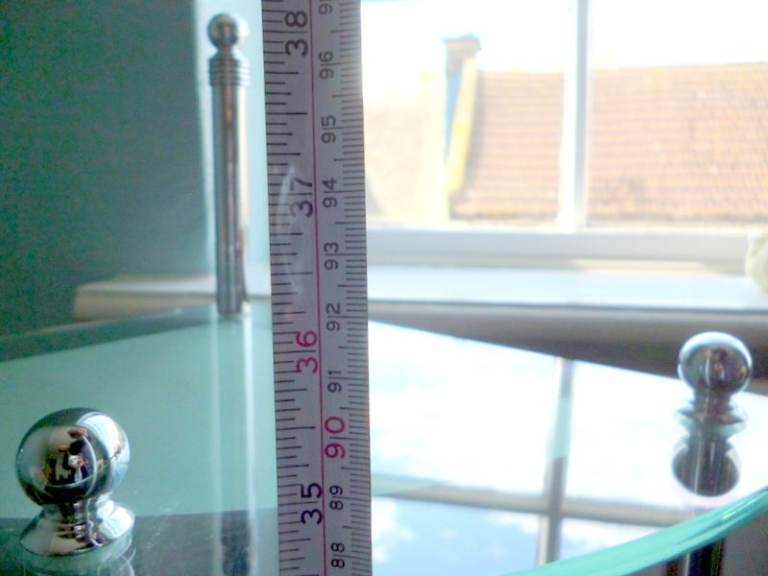 TOUGHENED GLASS SHELVES. 34 INCHES HIGH.