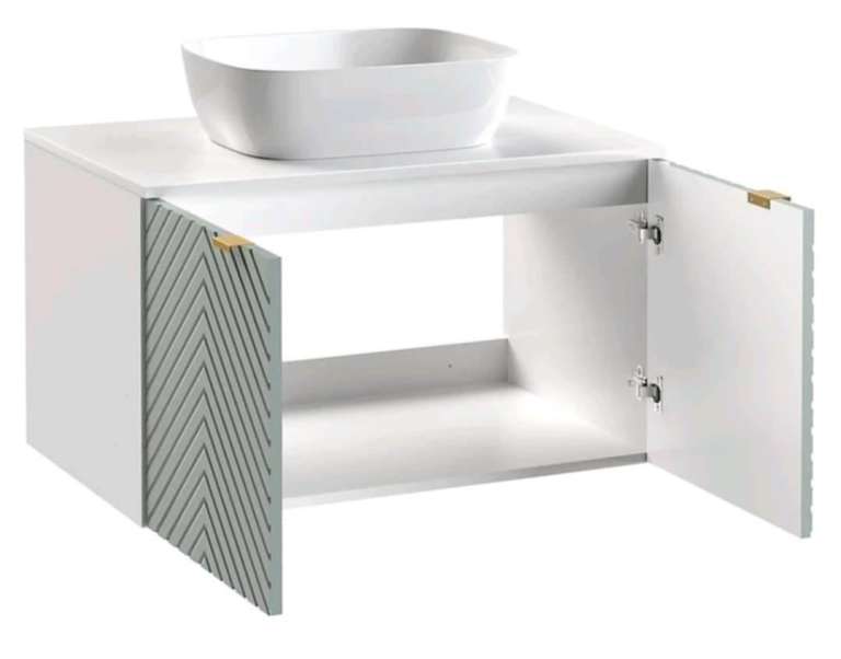 Posting for under a monthBathroom Vanity Unit 800mm Wall Cabinet Floating Ribbed Fluted 2 Door Green Cara
