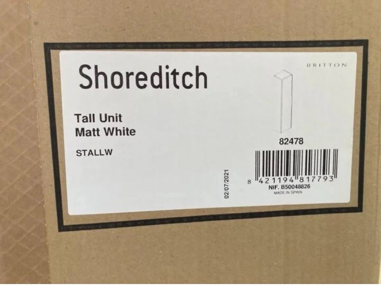 The Shoreditch furniture collection range from Britton Bathrooms offer a range of storage solutions. This wall hung tall cabinet comes in a matt white finish. The unit provides practical storage for toiletries and helps keep your bathroom clutter-free. The unit is manufactured in high quality 16mm medium density fibre board and comes supplied with a chrome handle as shown.