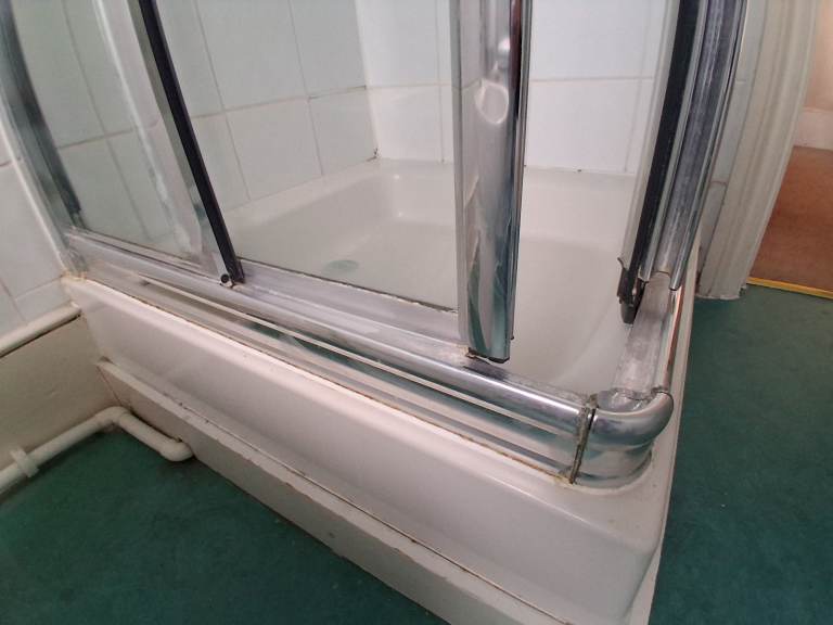 1. DARYL shower surround with two sliding doors in good condition, ceramic shower tray with chrome outlet. (mixer tap, hose and shower head NOT included) Good condition.