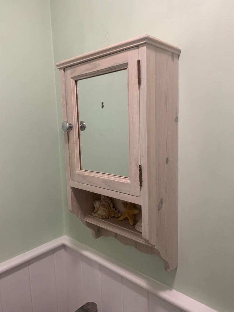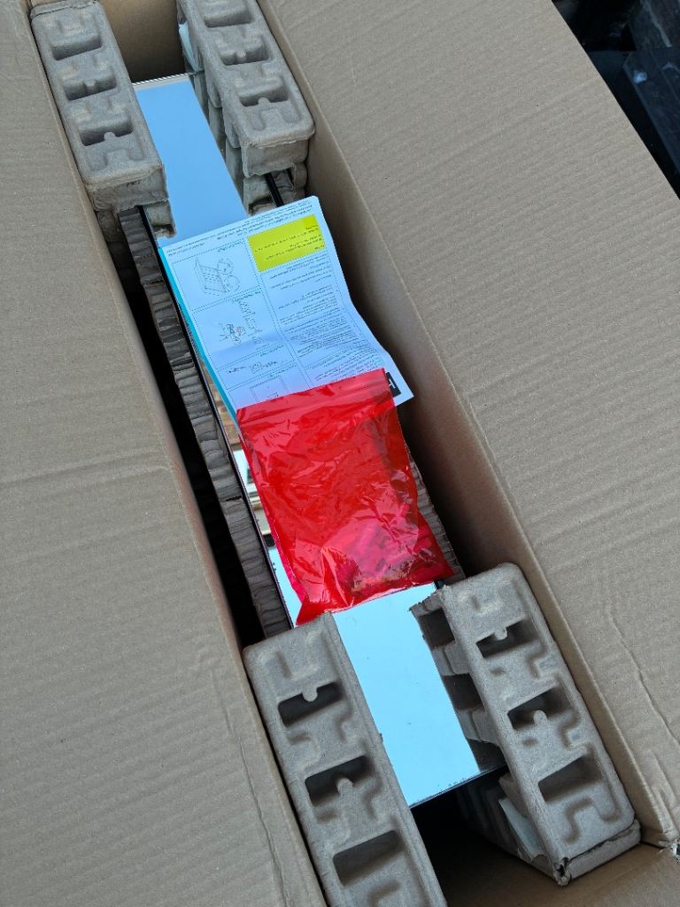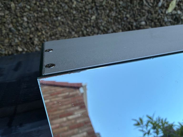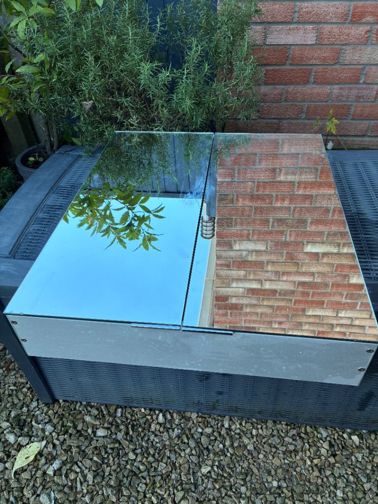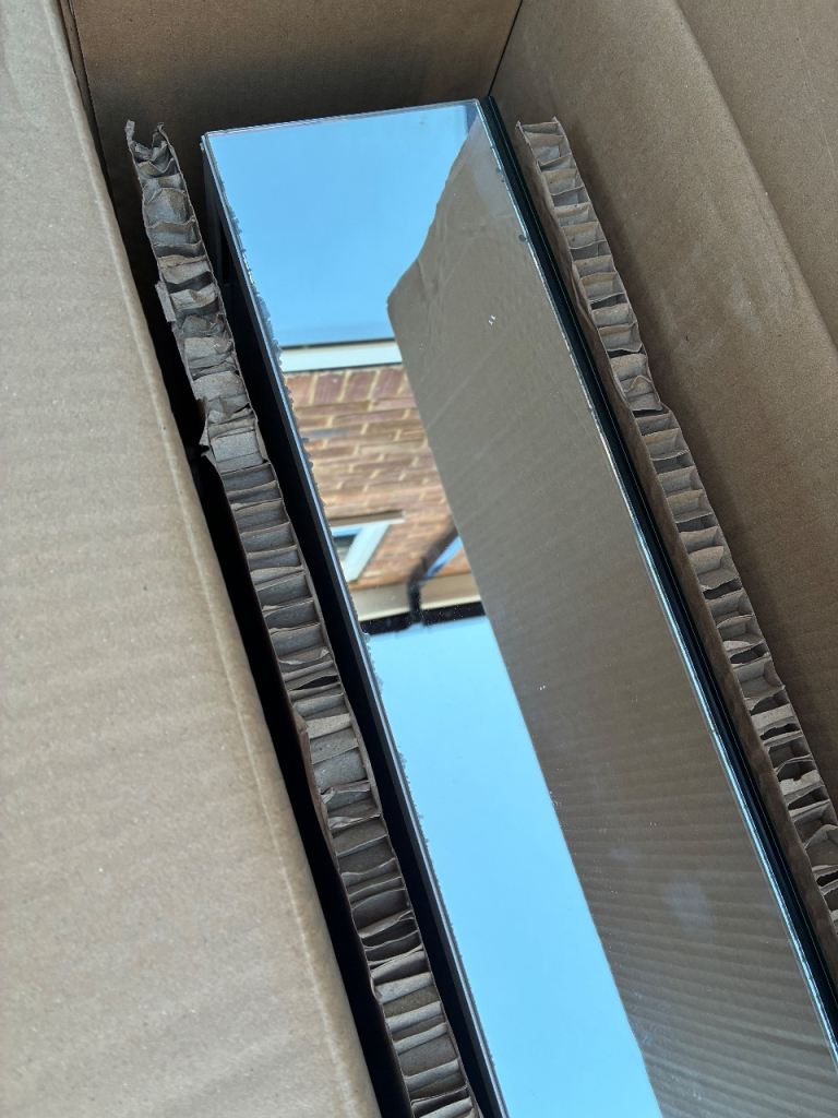 High end cabinet as pictured in its original box with fittings. Has been used for a few years and therefore has signs of degrade to the edges of the glass, however this is only in certain places all of which I have highlighted in the images. Still looks great and comes with a brand new fixing pack too and instructions. Cost £500 new so is a bargain at the price.