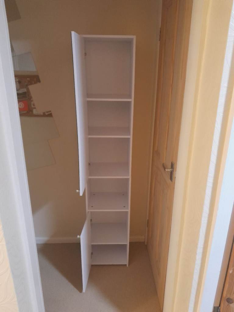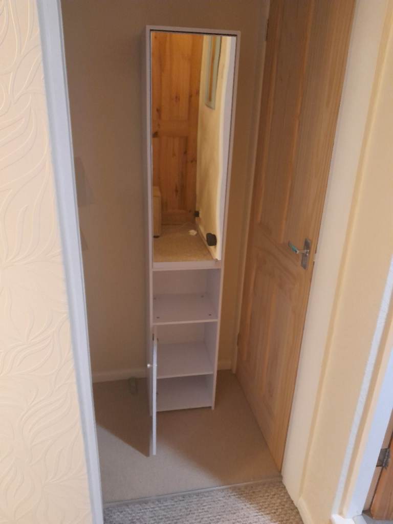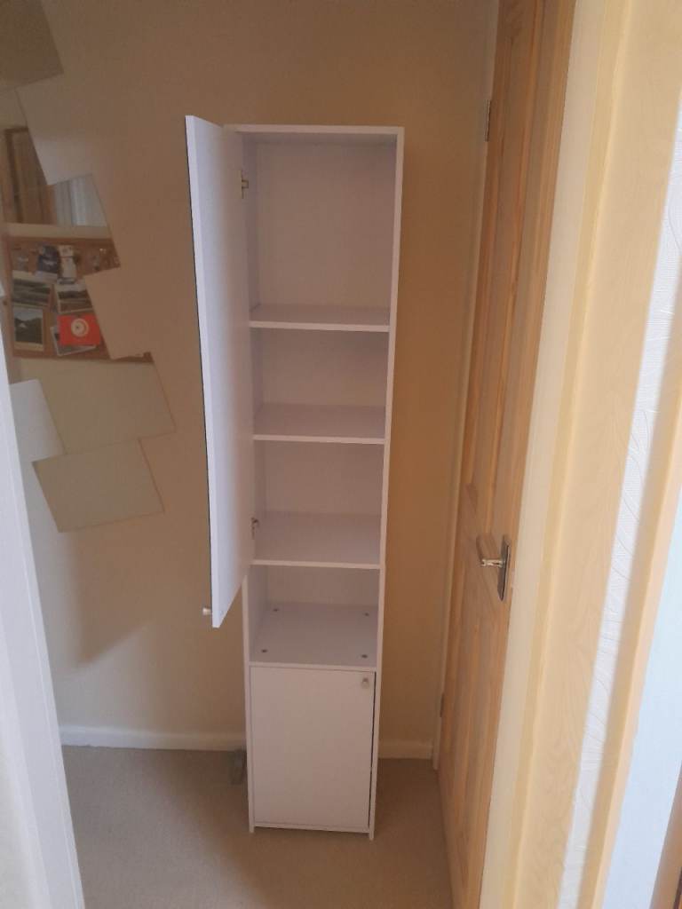 Never used, built, Argos white, mirrored, tall bathroom cabinet.