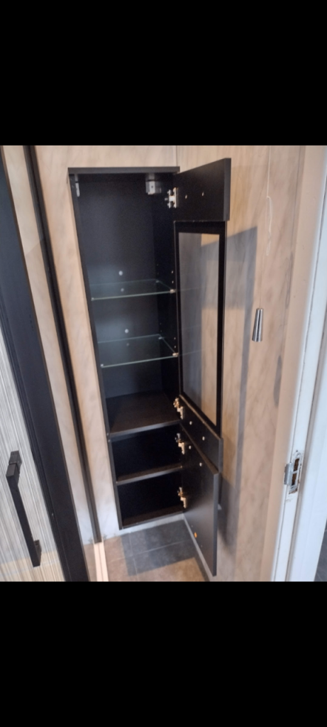 Brand new bathroom cabinet. Still unopened. Ordered twice online by mistake. The open one in the pictures in what the cabinet looks like.