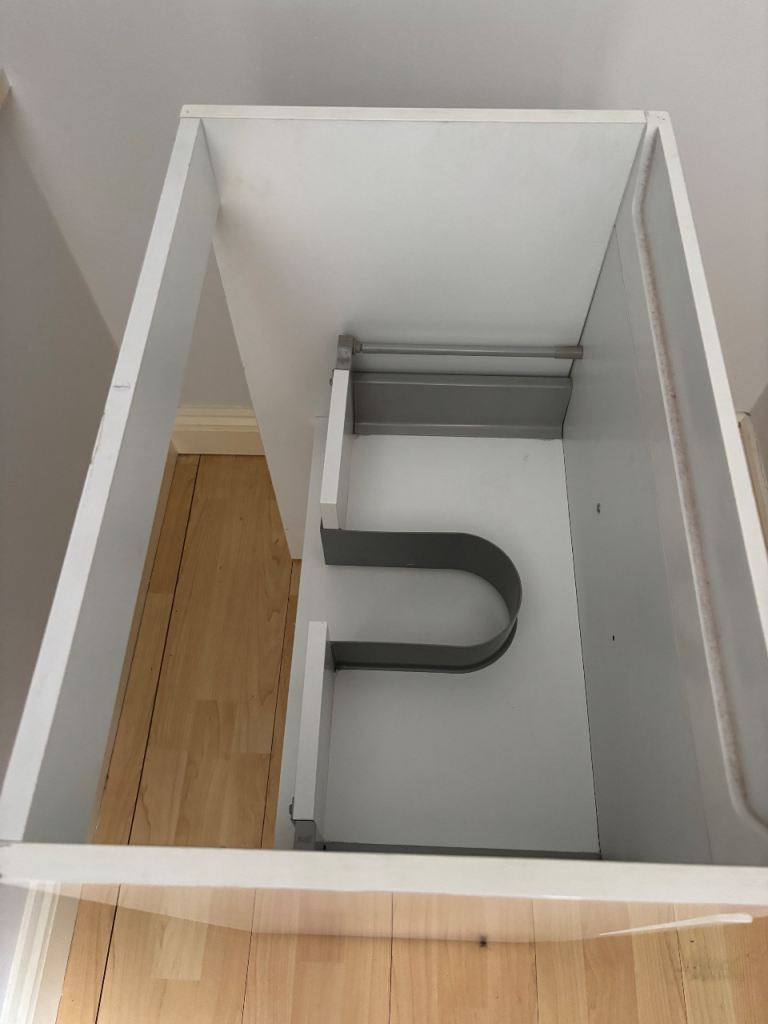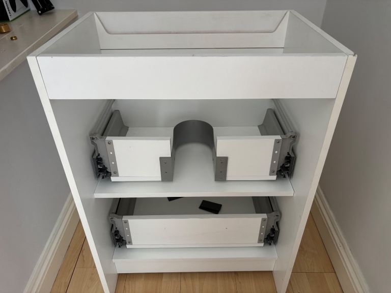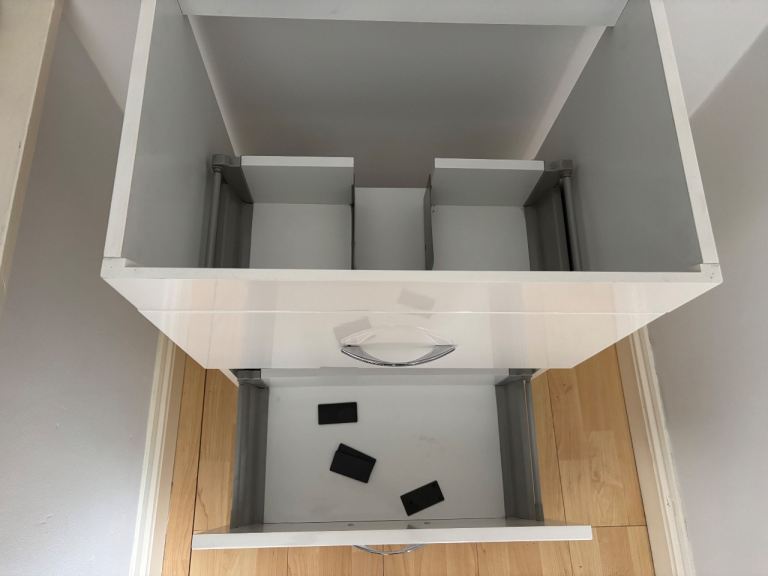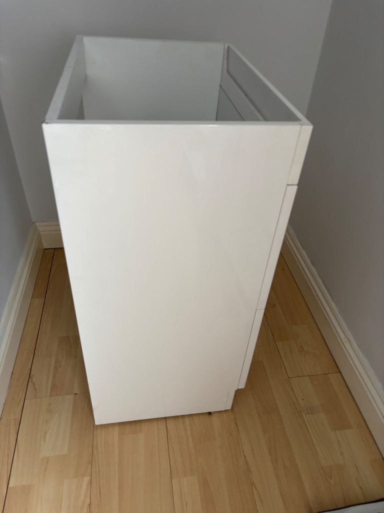 White gloss floor standing two drawer basin unit