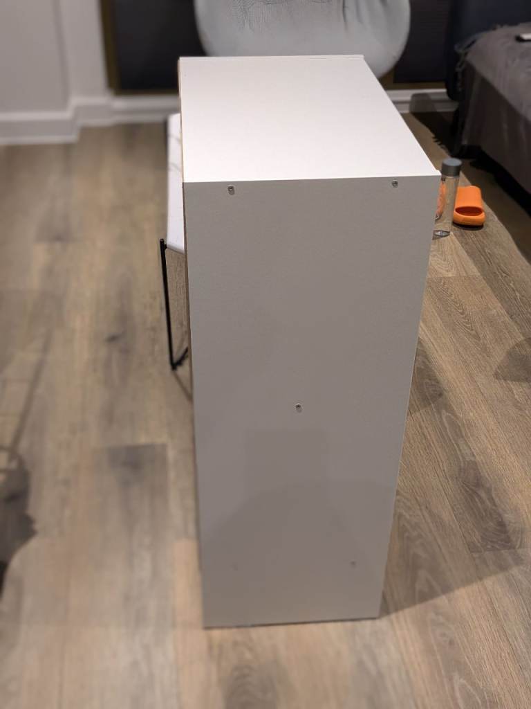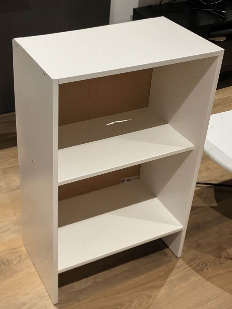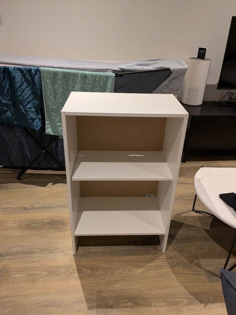 White IKEA shelving unit, 3 tiers, good condition. Perfect for books, storage, or office use. Moving this week!
