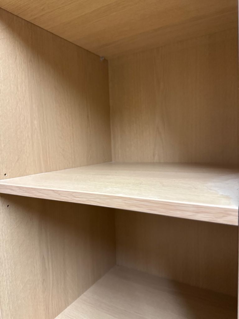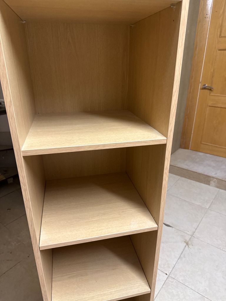Posting for 3+ yearsTall StorageTwo identical Shelving Units – Oak Finish – 2.2m High (