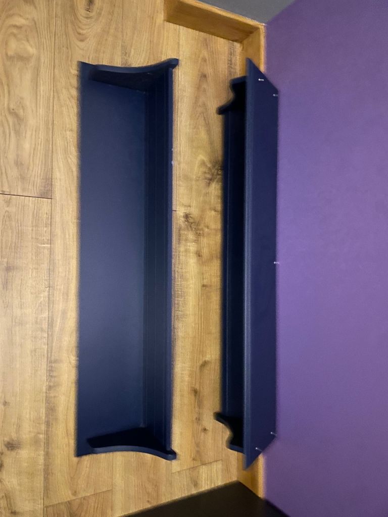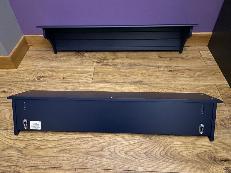 Pair of nice wall shelves in navy colour. Good condition, no scratches. There is two options for hanging them, depending on your preference.