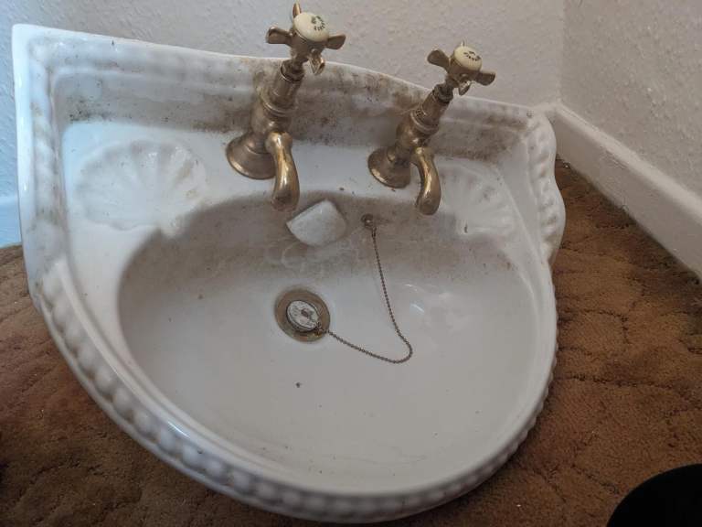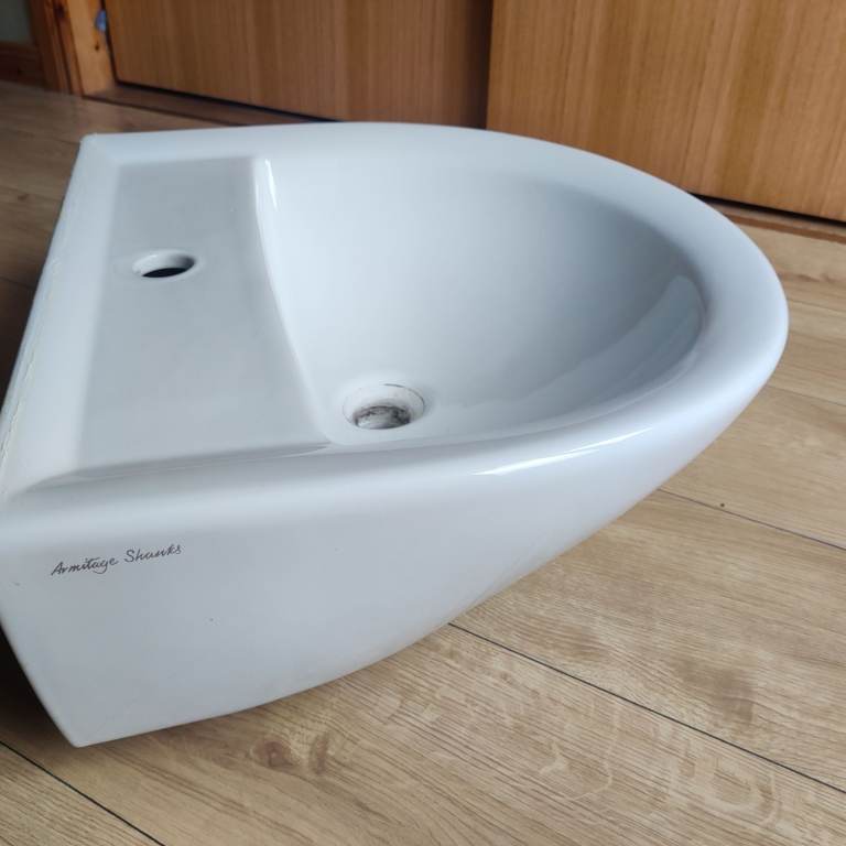 For sale: White ceramic Armitage Shanks washbasin with full pedestal. Good condition, no cracks.