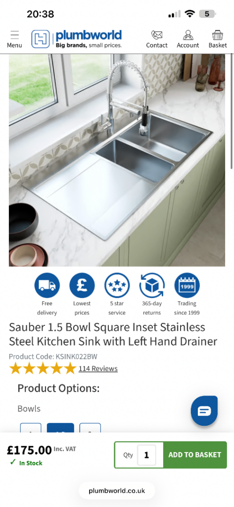 Bath sink, base and tap fitted