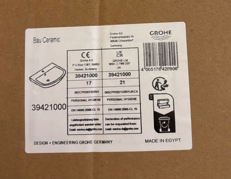 This Grohe Bau Ceramic 600mm Wall Hung basin was purchased from Victorian Plumbing by mistake. Selling rather than returning to avoid postage.
