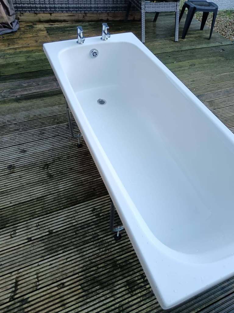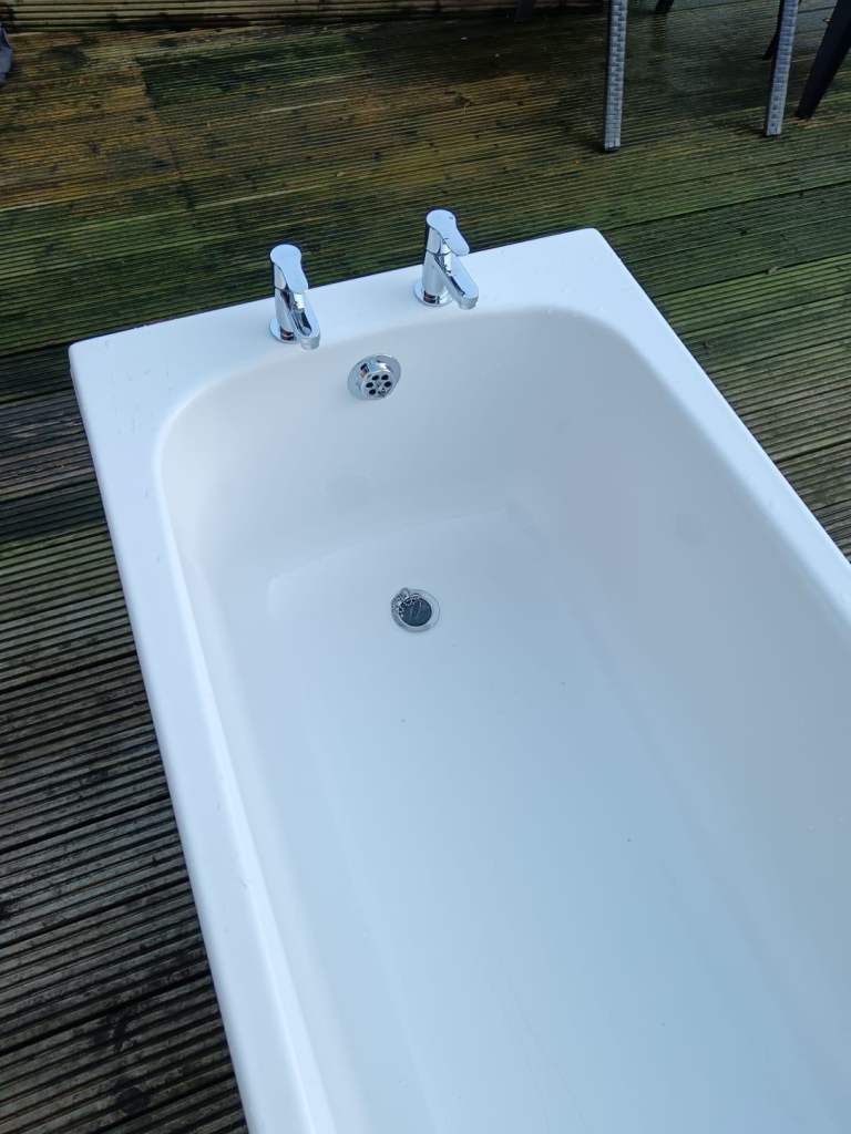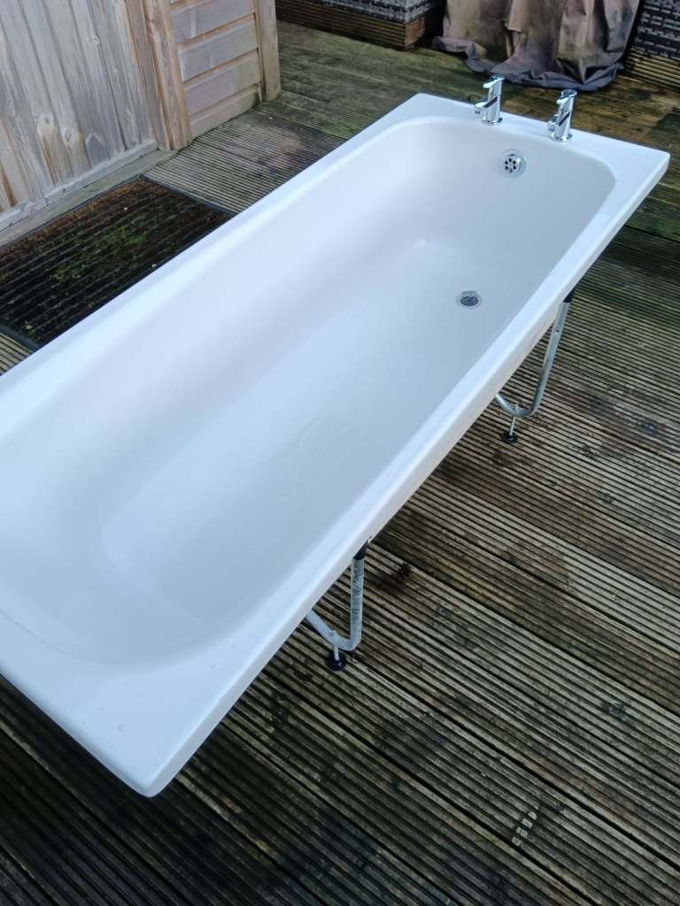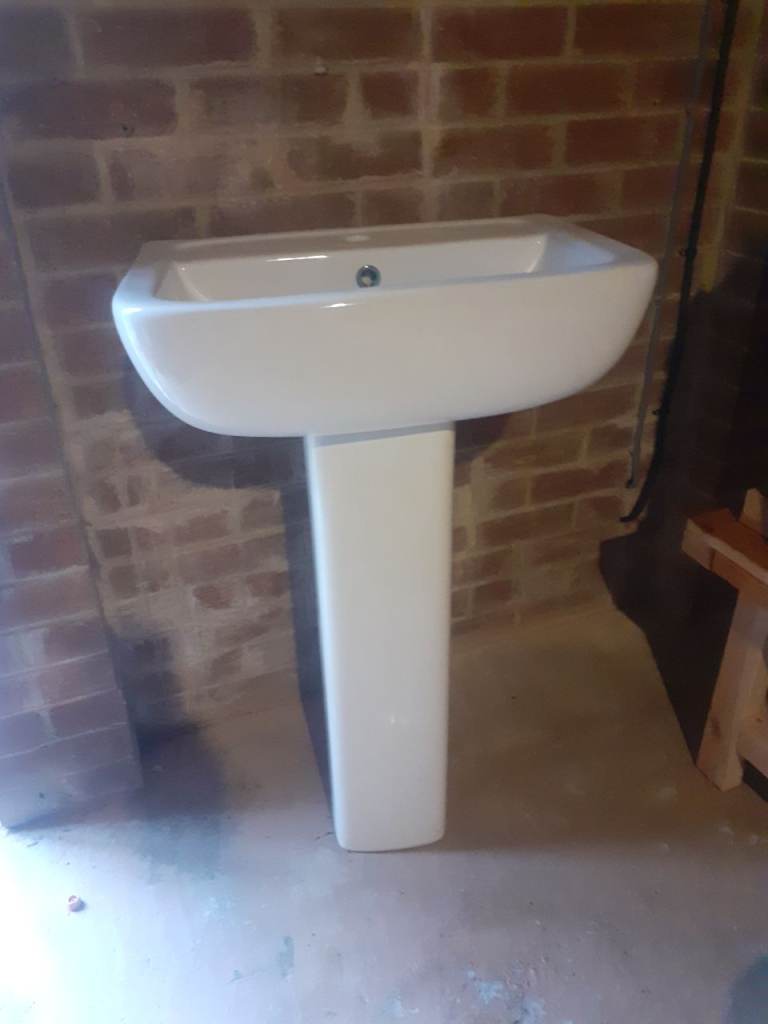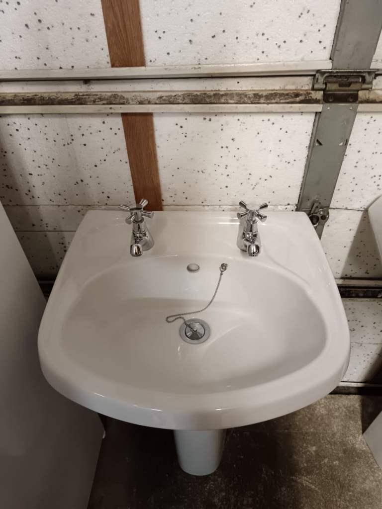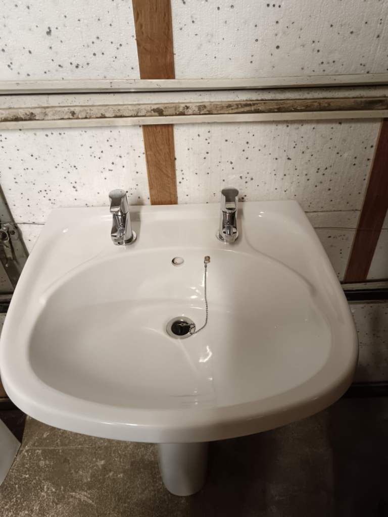 Bath with taps, 2 Sinks with taps (small & large), Toilet, Single Radiator (850mm with valves)