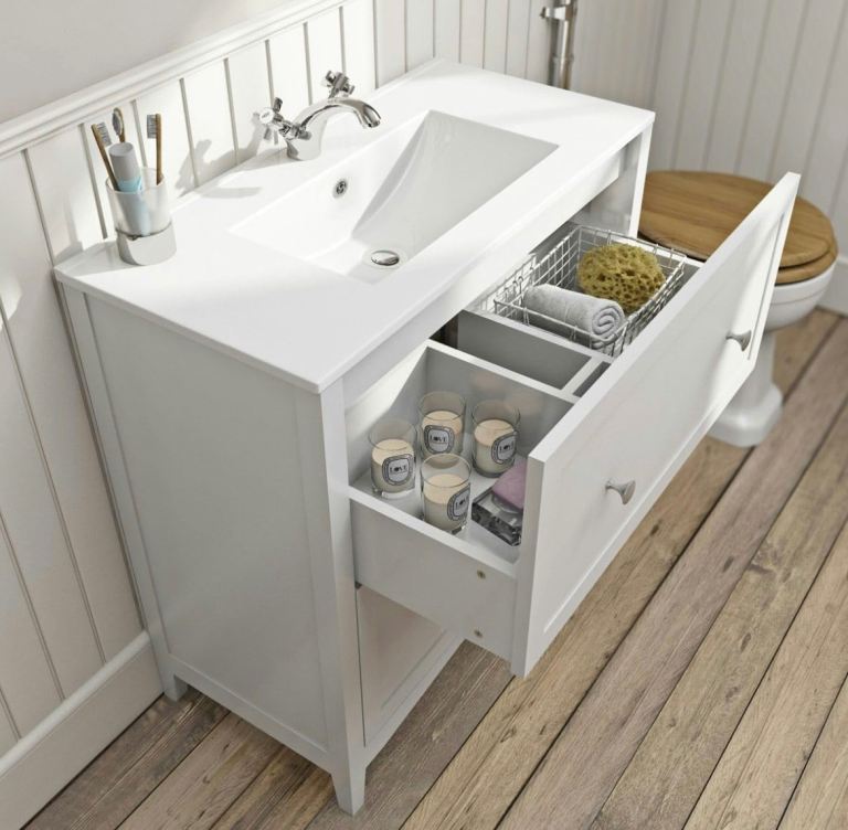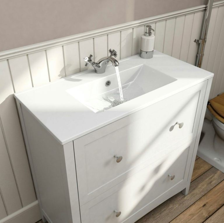 The Bath Co. Camberley white floorstanding vanity unit and ceramic basin 800mm - £315
