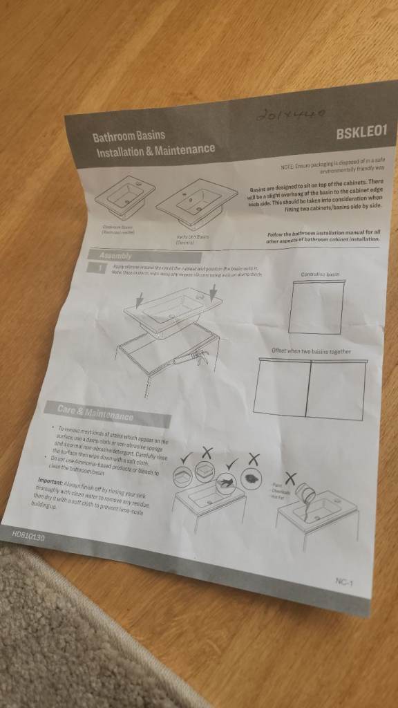 Cloak room basin to fit cabinet 230mm x440mm. Basin size 235x444mm. Resin cast marble. Purchased in error.
