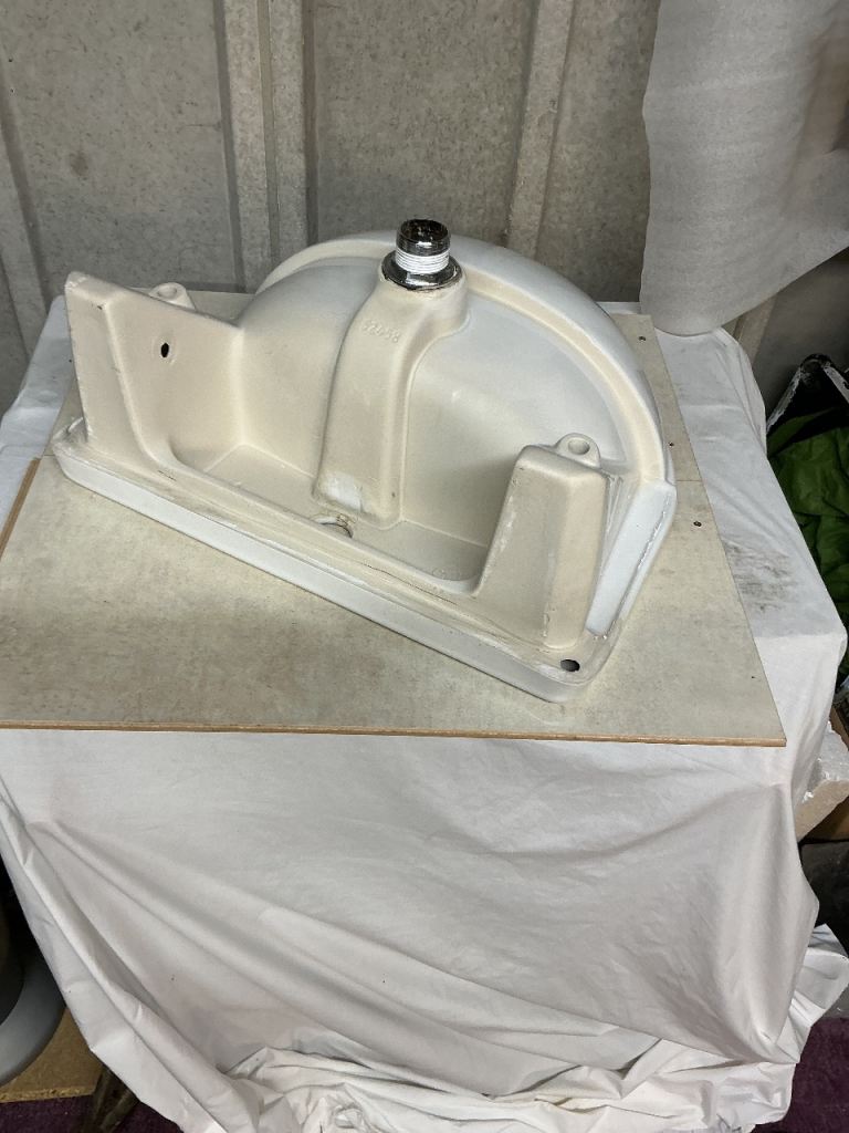Small cloakroom sink, 500mm wide x 400mm deep , fits into cabinet unit, in very good condition.