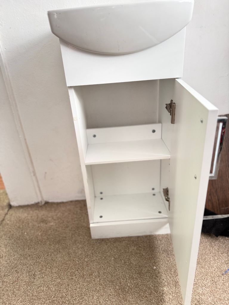 Compact White Cloakroom Basin Sink with Vanity Unit Cabinet – Excellent Condition