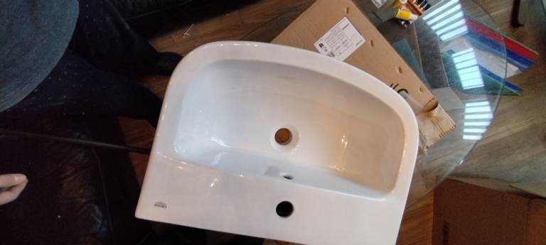 Grohe Bay Ceramic wash basin 55 cm(product code 39440000) and Bau ceramic half pedestal(product code 39426000) in Alpine white. I am also including Grohe waste with push open plug(product code 40824000) in chrome. RRP for all is £150. Brand new, opened boxes but unused as we changed our mind on design. Can send more pictures if needed. Closest offer will be considered. Pick up only.