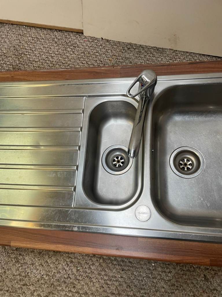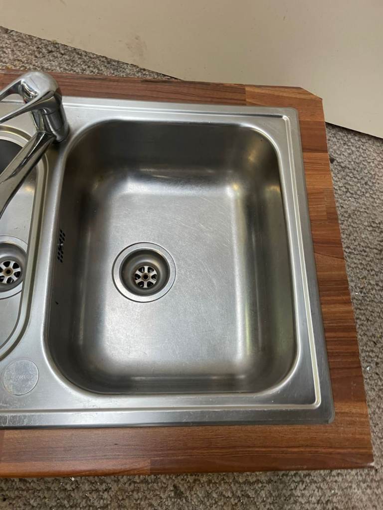 Stainless steel sink with tap and counter surround - gorgeous wooden counter