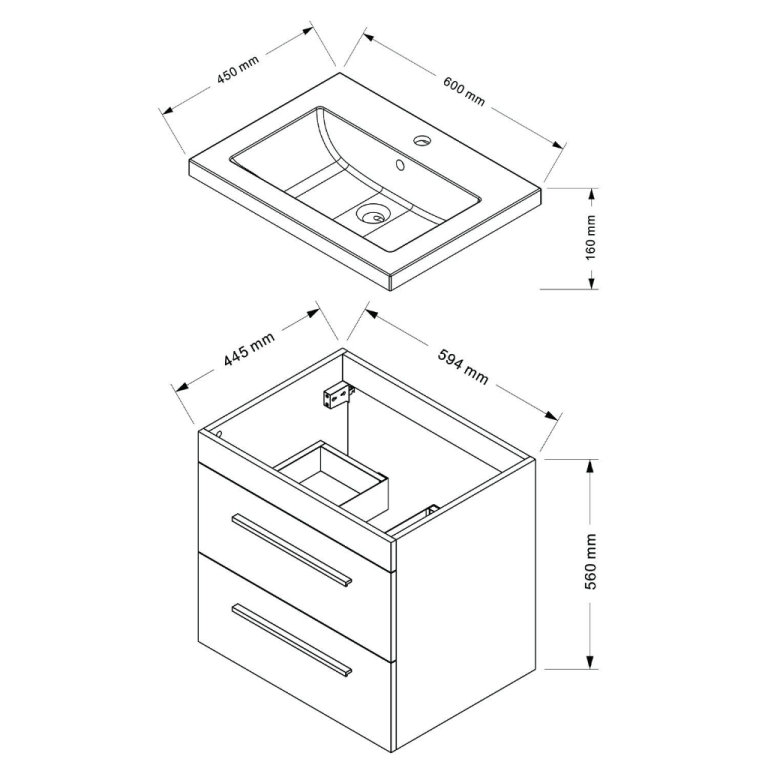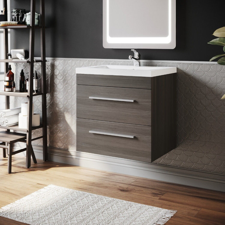 New Wood Wall Hung Basin Vanity Unit 600mm RRP £310 Our Price £200
