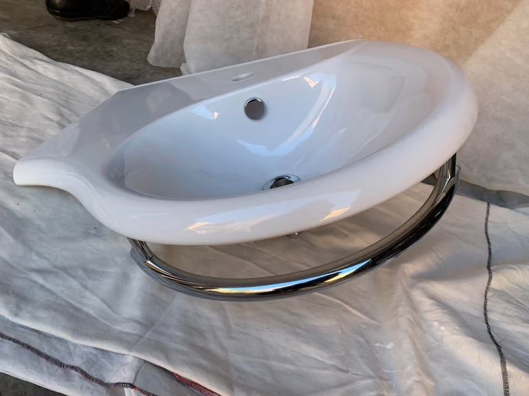 I have for sale a Porcelanosa NK Noken Offset Wall Hung Bathroom / Cloakroom Basin / Sink + Chrome Towel Rail