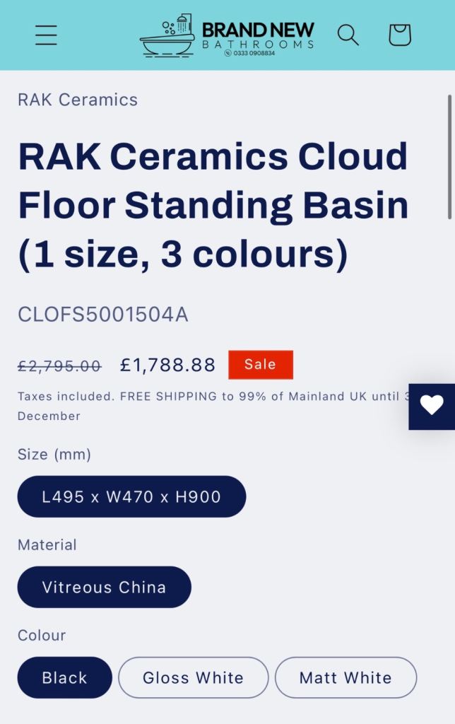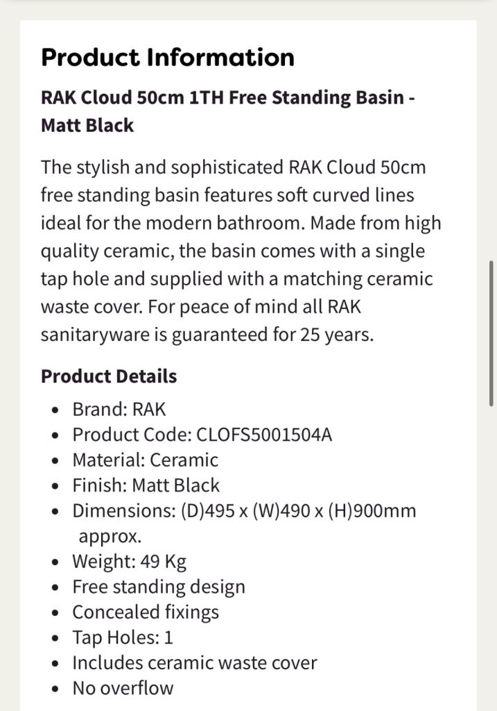 RAK Ceramics Cloud Floor-Standing Basin in great condition — a stylish, high-end designer piece at a fraction of the original price.