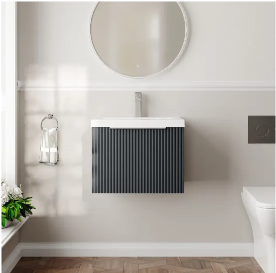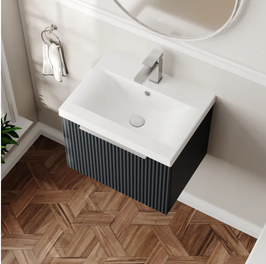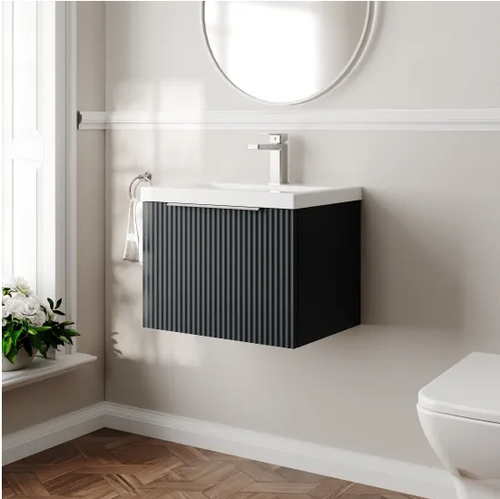 SOFT BLACK WALL HUNG VANITY UNIT WITH MID-EDGE BASIN