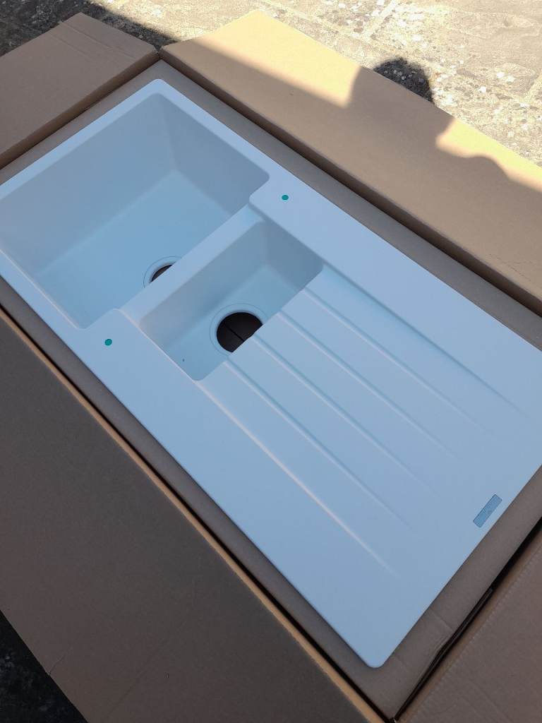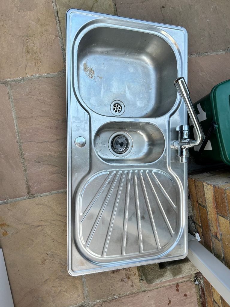 Stainless steel kitchen sinks. 76 cm, 45.5 cm , 15cm. Also 1 Bowl waste and overflow kit unopened.