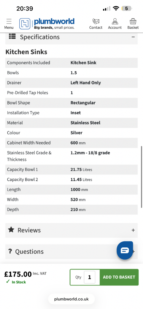 Posting for 13+ yearsStainless steel sink with left hand drainer