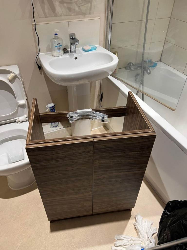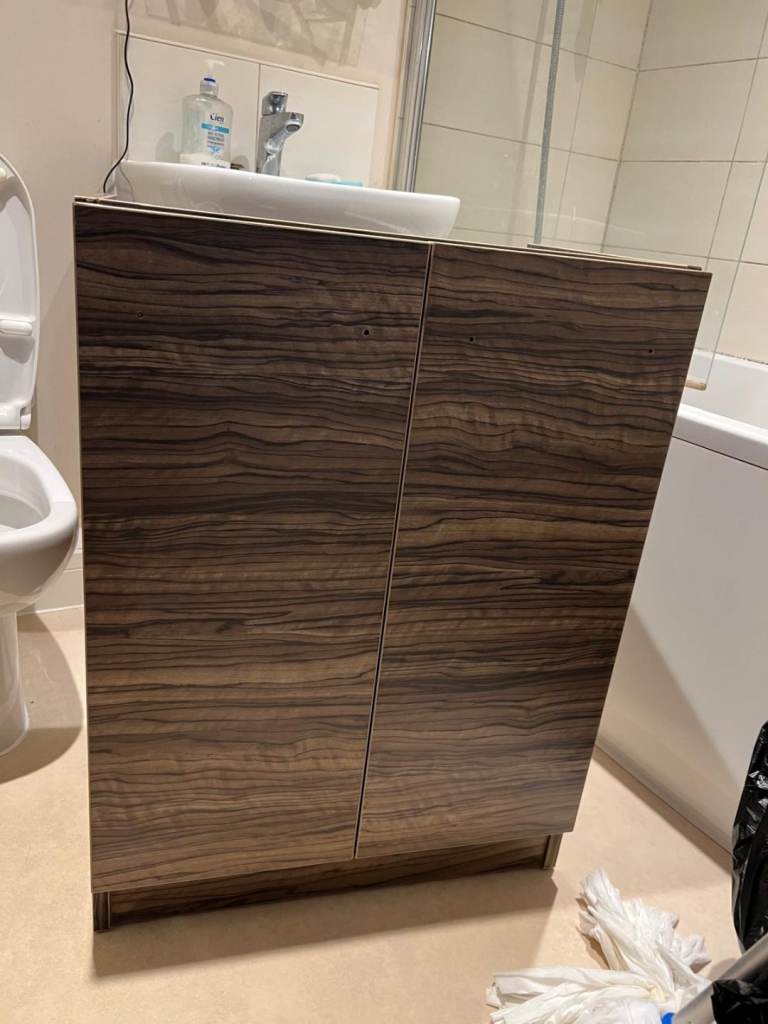 Brand new, never installed under sink cabinet with a lovely dark wood effect.