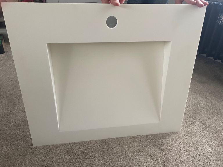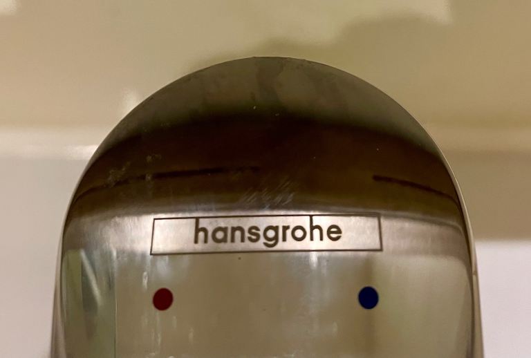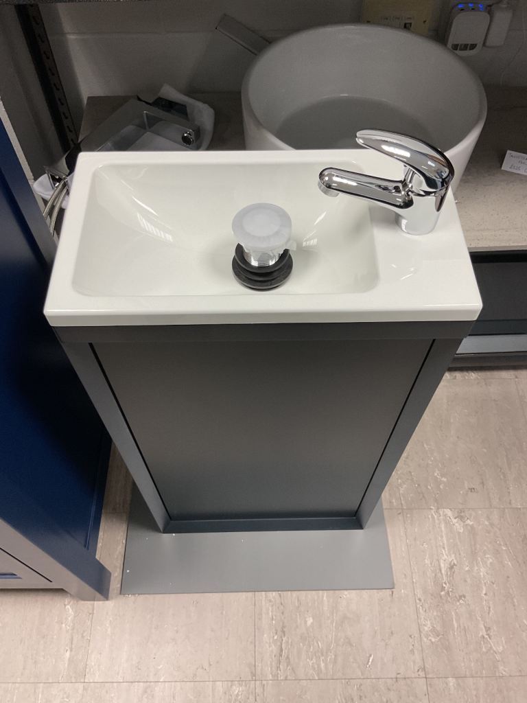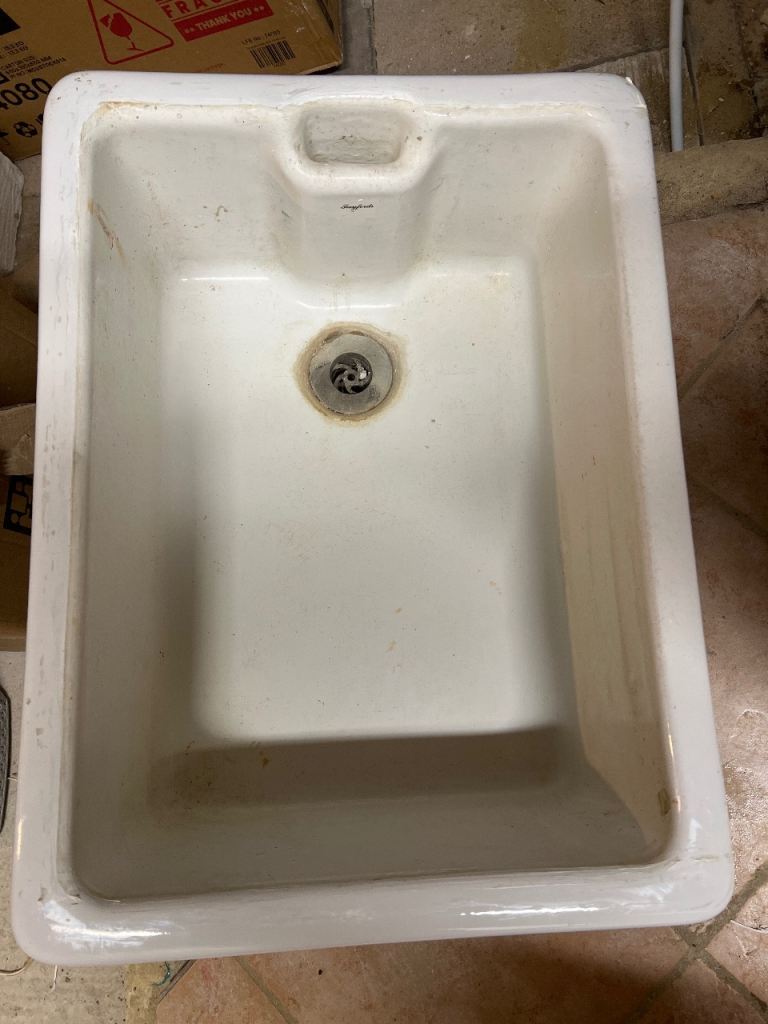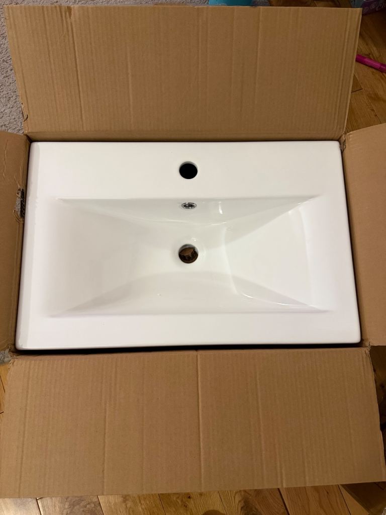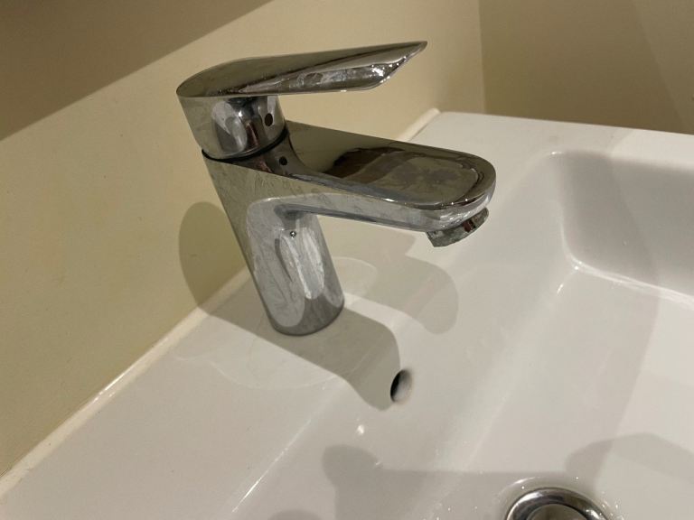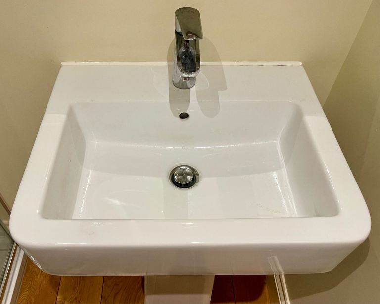 Very substantial modern basin, white porcelain. Pop up waste included, with chrome tap from Hansgrohe.