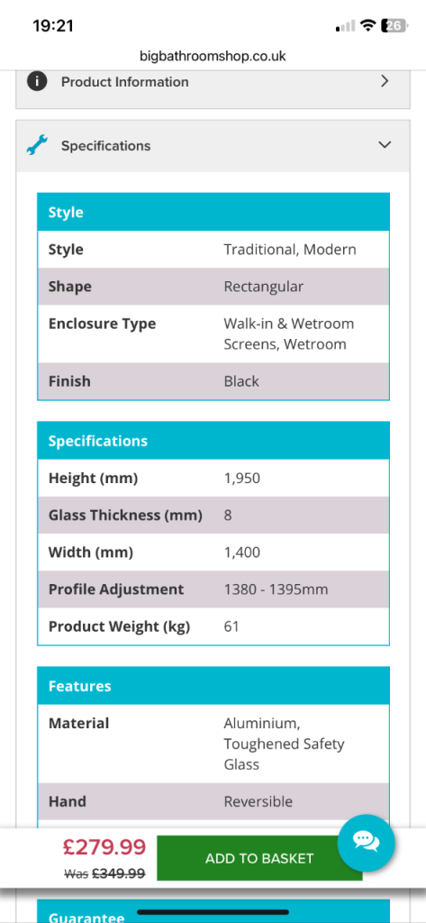 Still in packaging . Ordered wrong size . Spec is above in photos
