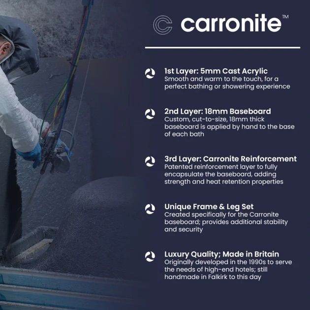 ✅ Premium material: Carronite is stronger and more durable than standard acrylic baths; also, water retains heat for longer than in regular cast iron or steel baths.