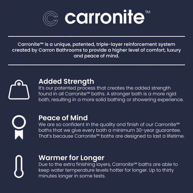 ✅ Premium brand: Carron, made in Britain and known for high-quality and long-lasting baths.