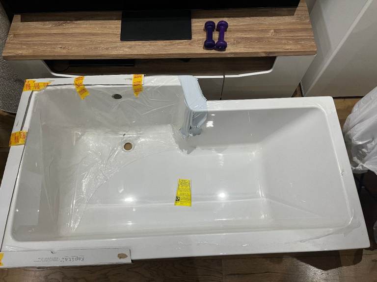 Posting for 10+ monthsCarron 1500mm L-shaped Carronite Bath (Stronger Than Acrylic) – Brand New