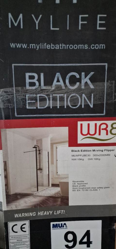And 1 x 300mm x 1950mm swing screen in black with the black lines across the glass.
