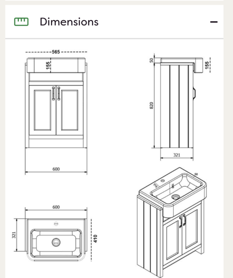 New. Chatsworth Traditional Beige Semi-Recessed Vanity - 600mm Wide. No Basin