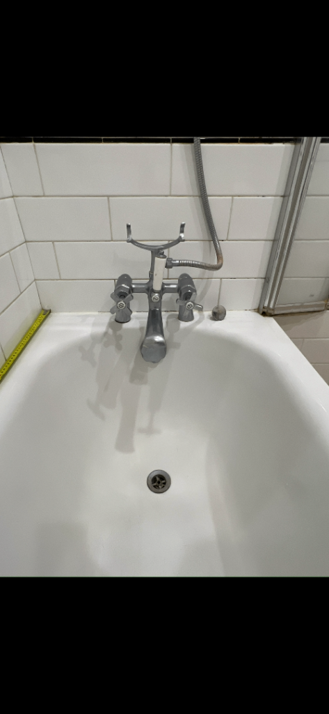 Used in good condition metal bath tub with water mixer and shower head. Bath tub length 170cm.